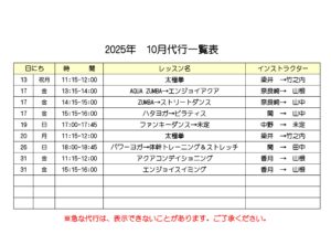 NEWS10月レッスン代行表(10/11更新)