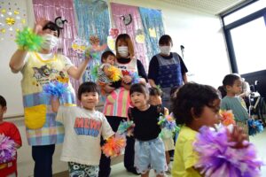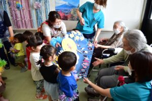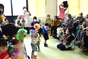 ダンスでは、利用者様もリズムに合わせて体を動かされたり、にこやかに拍手されるなど子供たちと一緒になって楽しまれました。