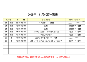 11月レッスン代行表(11/13追記)