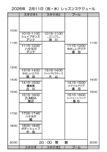 02月11日(祝水)レッスンスケジュール