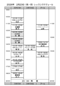 2月23日(祝月)レッスンスケジュール