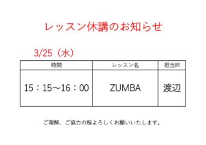3月15日(水)渡辺IR レッスン休講のお知らせ